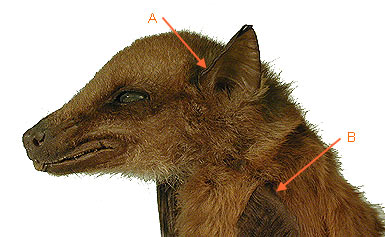 A. There is a white or yellow tuft of hair at the base of each ear.