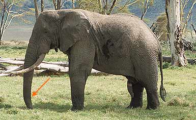 The nose is elongated to form a trunk that reaches almost to the foot of the animal.