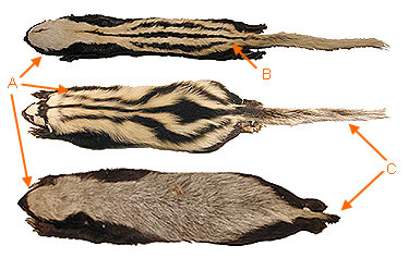 B. The colour pattern of the animal is usually black and white, black, grey and white, or all black. Occasionally, the light colour is yellow.