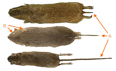 A. The tail is either absent or no longer than the hind feet.