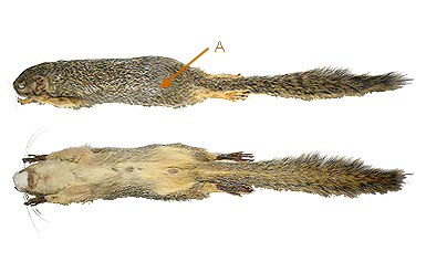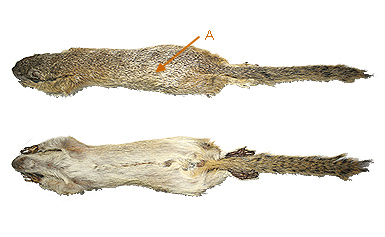 There is a lateral stripe (sometimes indistinct) on the sides, and the fur on the underside is the colour of ash.